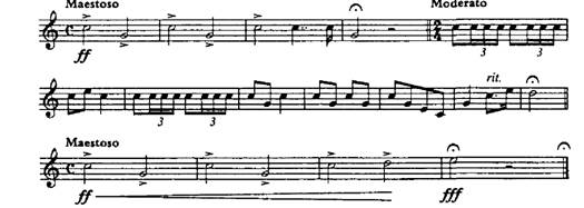 Наполеон Бонапарт, король Эльбы, перед тем, как покинуть Францию и отправиться в свои новые владения, прощался с императорской гвардией. В вестибюле замка он приветствовал членов оставленной ему свиты и шумную компанию комиссаров правительств союзных стран. Оттуда он прошел но подковой поднимавшейся наверх широкой лестнице к двери мраморного балкона, выходившего на просторный двор Белой лошади. Около 5000 солдат Старой гвардии собрались внизу. Старшие офицеры стояли полукругом впереди со знаменосцами и оркестром. У ворот уже ждали экипажи. Как только Наполеон появился у перил, кавалерийские трубачи заиграли Fanfare de l'Empereur:50 552^REV OLUTIO