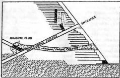 Описания Великой пирамиды, встречающиеся у греческих и римских историков классического периода, свидетельствуют о том, что в те времена знали о поворачивающемся камне, который закрывал вход в нисходящую галерею и подземную камеру. Однако никто даже не догадывался о существовании целой системы верхних коридоров, галерей и камер, потому что восходящий коридор был замурован с помощью трёх больших гранитных блоков, а затем замаскирован треугольным камнем, чтобы спускавшийся по нисходящему коридору не догадался о существовании соединения с верхними проходами (рис. 65).