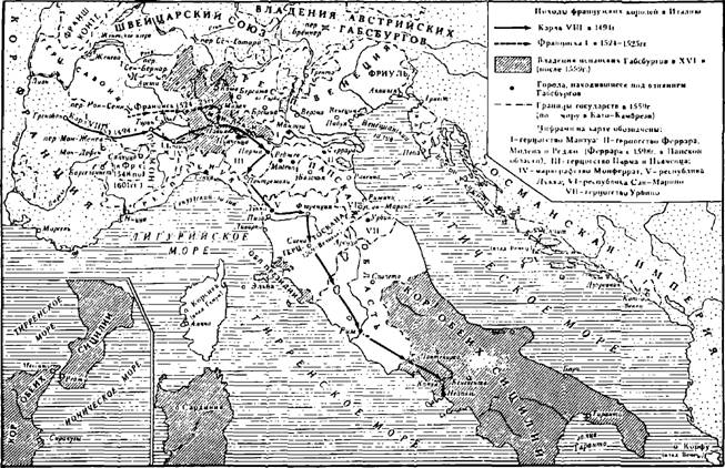 Папская область оставалась теократическим государством во главе C папой. Подавляющая же часть государств Апеннинского полуострова были монархиями, тяготевшими к абсолютистским формам, где высшая административная и военная власть находилась в руках герцога или маркиза, опиравшихся на придворную знать и чиновничество. B Неаполитанском королевстве и Миланском герцогстве реальные правительственные функции после окончания Итальянских войн были переданы испанским чиновникам (в Неаполе — во главе с внце-королем), но верховиая власть принадлежала заседавшему в Мадриде Высшему совету по делам Италии.Среди независимых крупных государств выделялась Флорен- гийская республика, проделавшая к середине XVI в. эволюцию к монархической системе абсолютистского типа. Медичи, вернувшиеся во Флоренцию в 1512 r., откровенно стремились к утверждению своей неограниченной власти, так что их правление, по словам Франческо Гвиччардини, историка, принадлежавшего к патрициан-