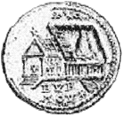 «Храм обелисков» в Библе. Монета римской эпохи. Надпись: (монета) «Священного Библа»
