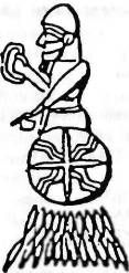 Когда Энлиль «на высоком троне» услышал об уничтожении своего храма и осквернении святая святых, он поспешил в Ниппур. Впереди него «летели боги, одетые сиянием», а сам он был «подобен молнии, спустившейся с небес» (рис. 104). Прибыв в Ниппур, от чего «содрогнулось священное место», он обратился к своему сыну Нинурте с просьбой найти того, кто повинен в святотатстве. Но Нинурта не признался, что это его союзник Эрра, а переложил вину на Мардука и его сторонников…