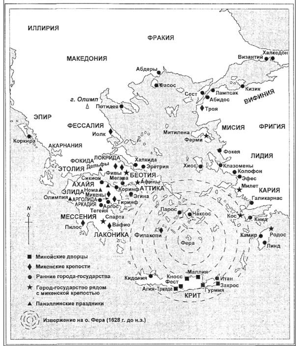 Карта 5. Древнейшие эгейские цивилизации: второе тысячелетие до