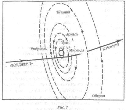 Теоретическая основа ответа на этот вопрос была сформулирована еще до сближения «Вояджера-2» с Ураном, в том числе и доктором Кристианом Вилле из французского Центра исследований геодинамики. Если луны Урана сформировались одновременно с планетой, то «небесное сырье», из которого они образовались, должно было сжаться в более плотную материю вблизи планеты. То есть на внутренних лунах должно быть больше горных пород и меньше льда, а на внешних лунах — наоборот. Поскольку материя и в самой Солнечной системе распределена точно таким же образом — чем ближе к Солнцу, тем больше доля тяжелых материалов и меньше «газовых» образований, — то луны более далекого Урана должны иметь меньшую плотность, чем луны Сатурна, расположенные гораздо ближе к Солнцу.